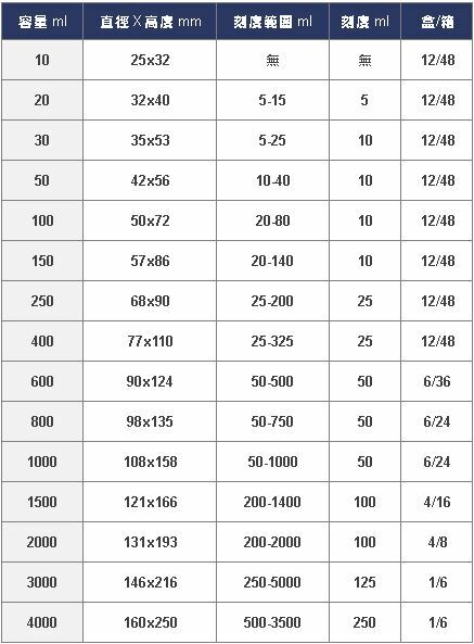 • 附刻度(250ml~4000ml附雙刻劃),具嘴,耐溫