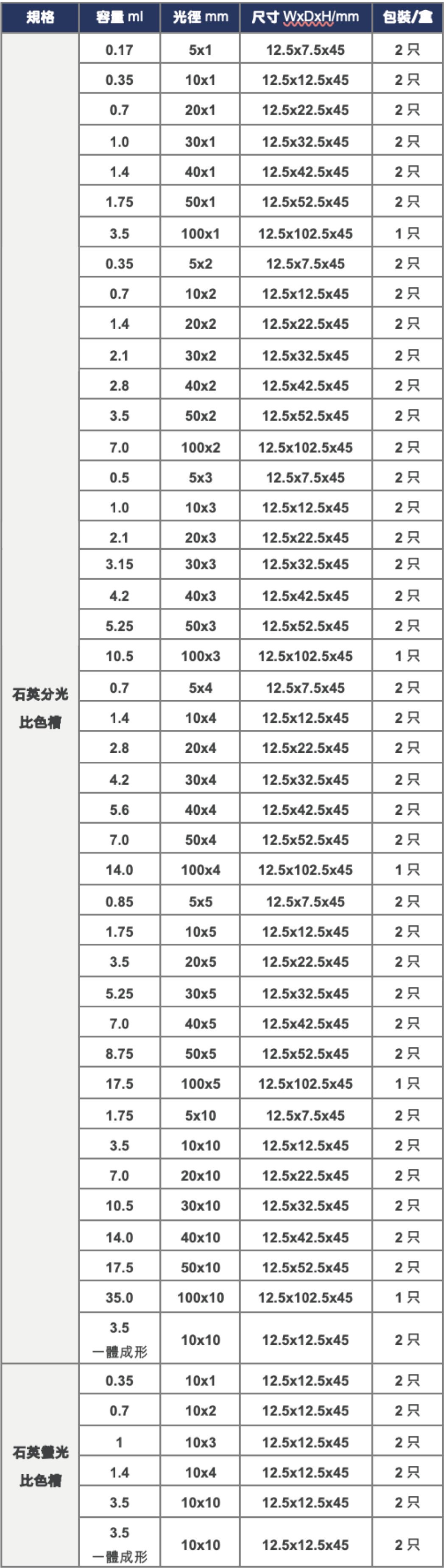 石英螢光比色槽3.5ml/光徑10mm為一體成型