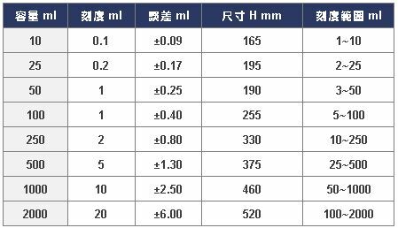 • 精度A級,刻度形式TD,刻度標示量等於倒出量